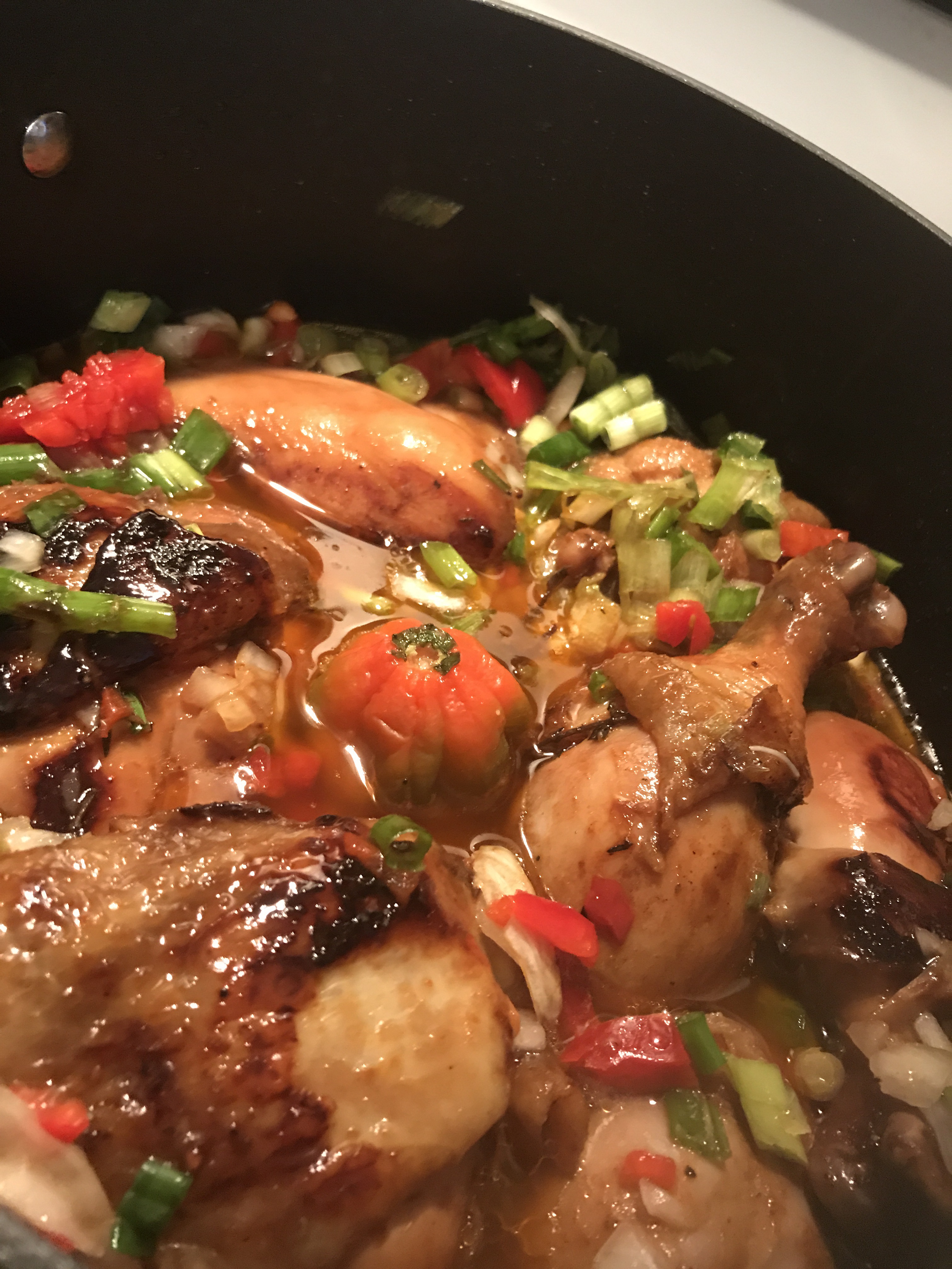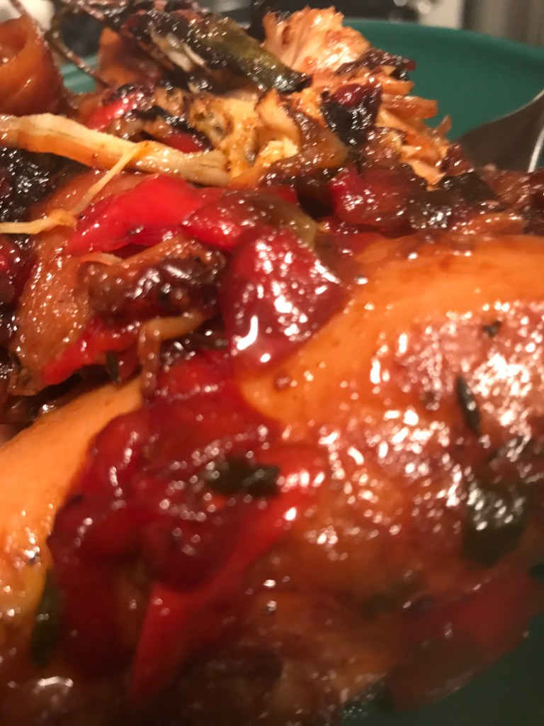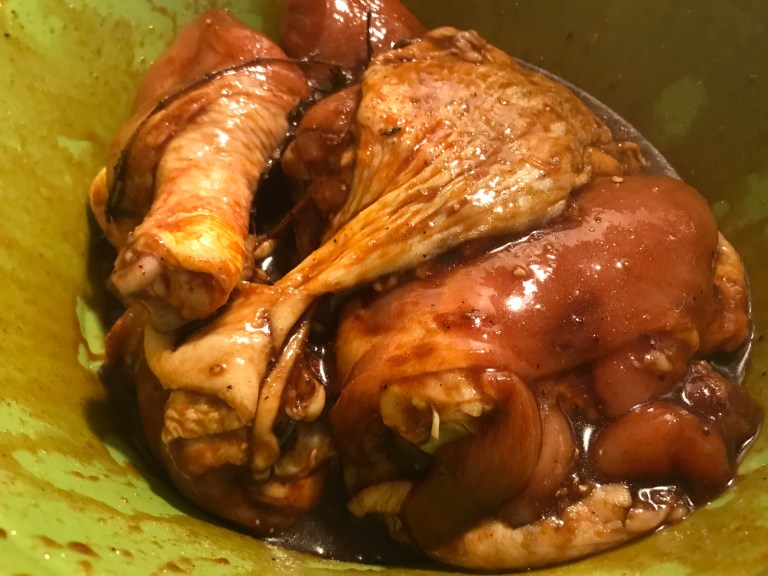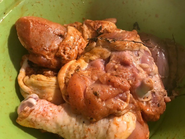 Once the chicken is “browned” cover it and let it marinate overnight.