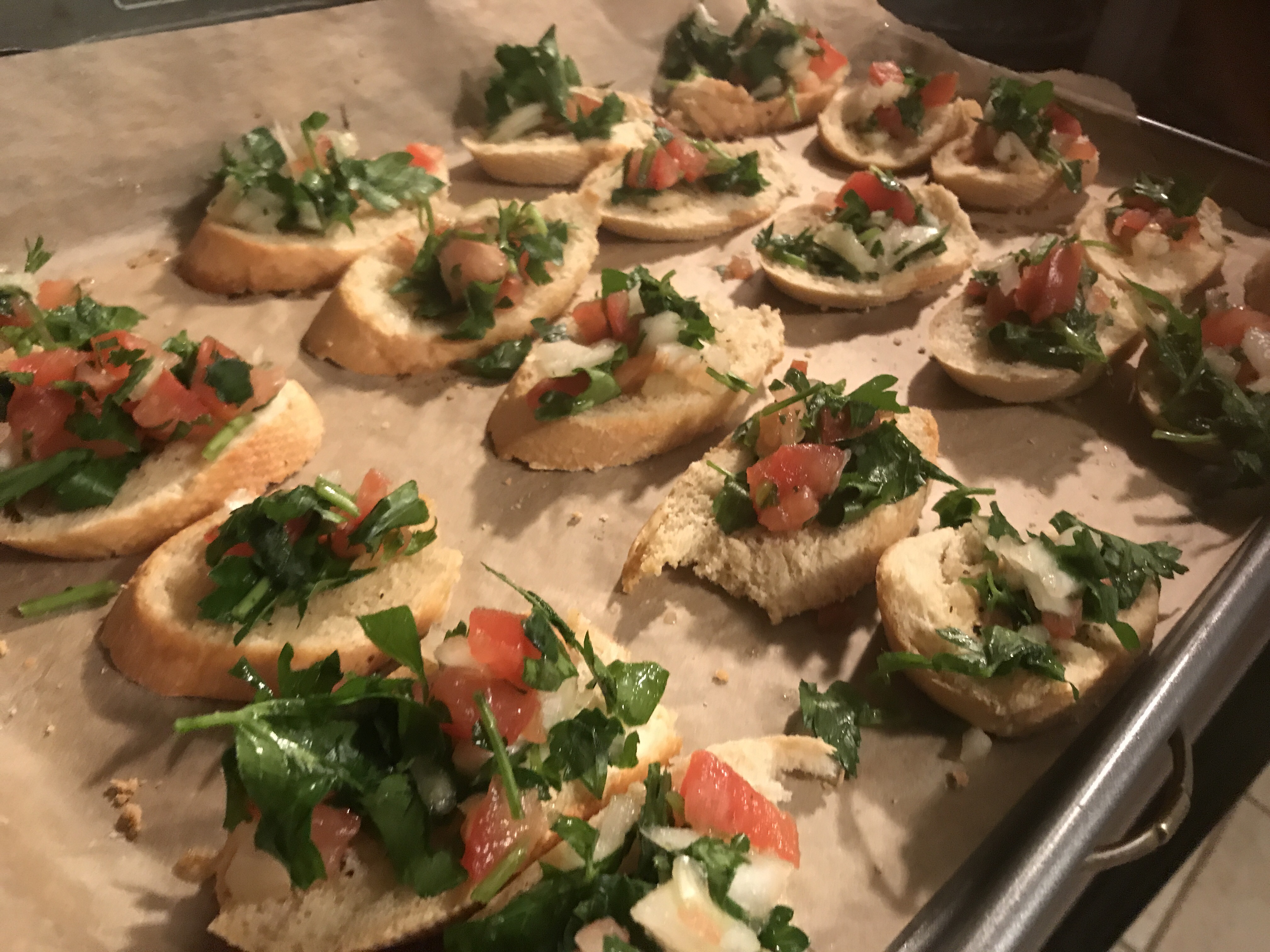 Scoop Tomato, Onion and Cilantro on top of sliced baguettes and serve.