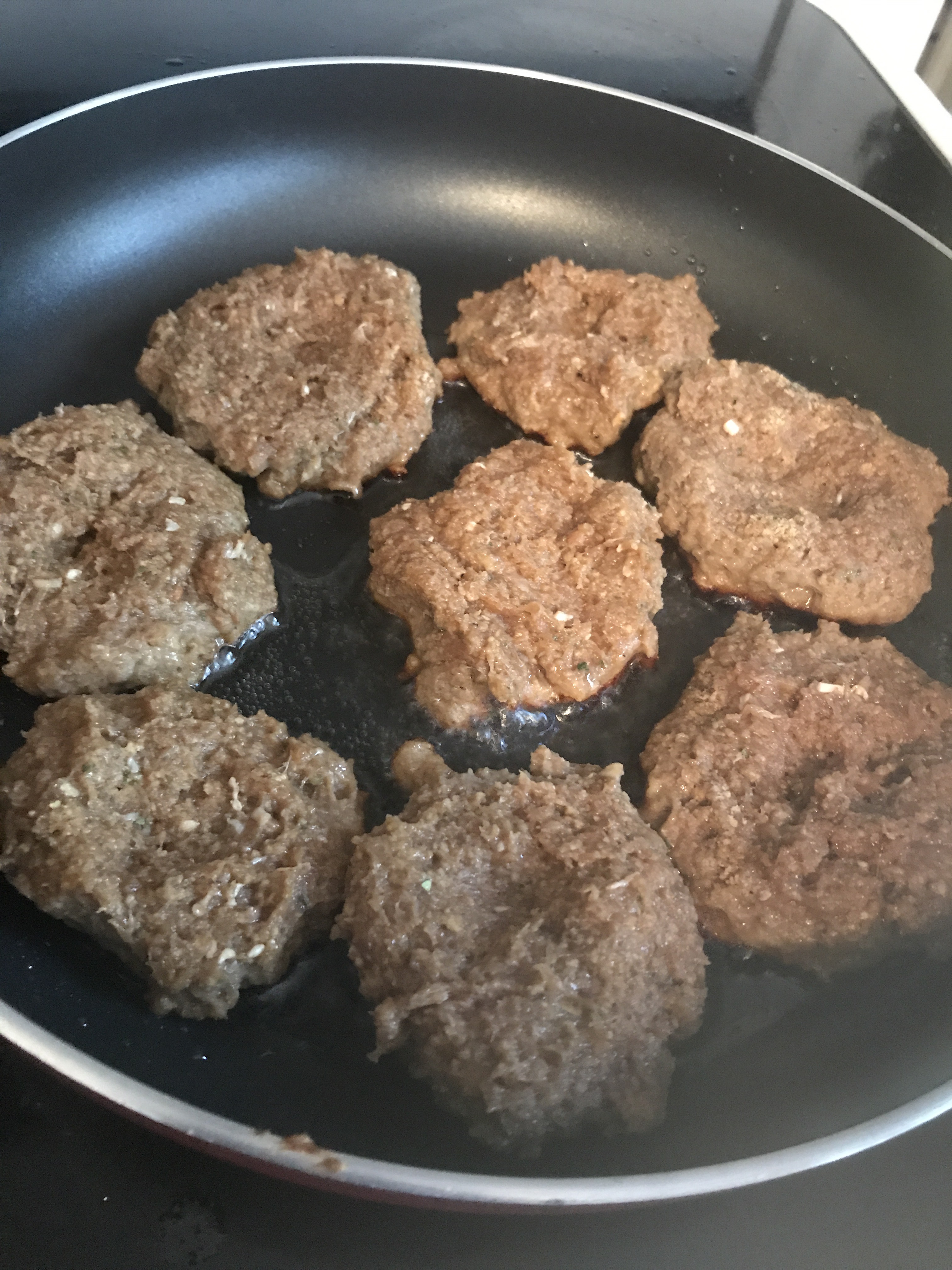 Put vegetable oil in a frying pan and cook the patties for about 3-4 minutes each side.