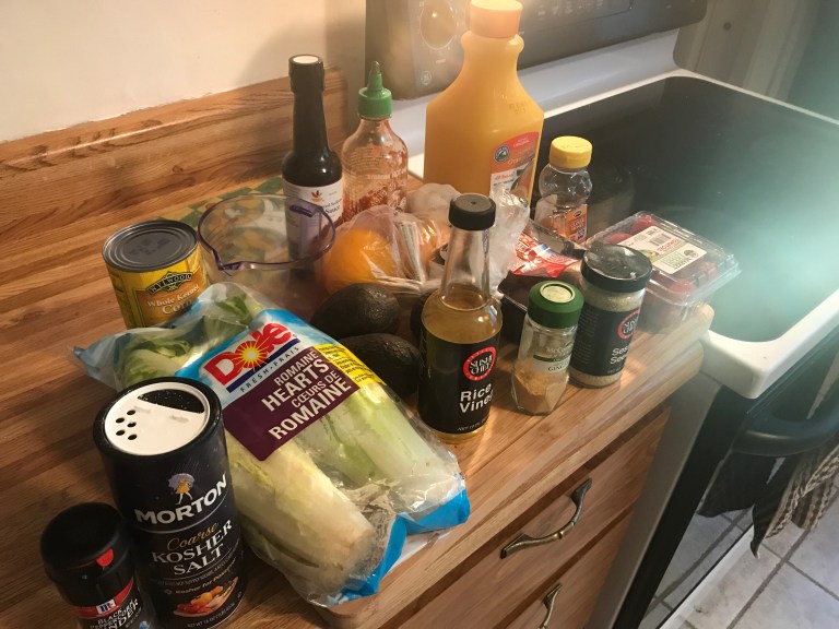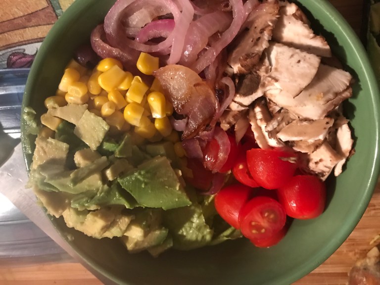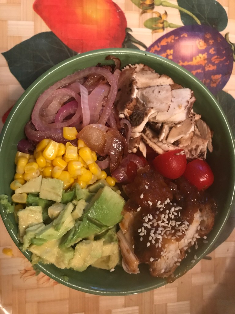 Chop the avocado into chunks and add them to the bowl. Set the bowl aside while you make the orange sesame chicken.