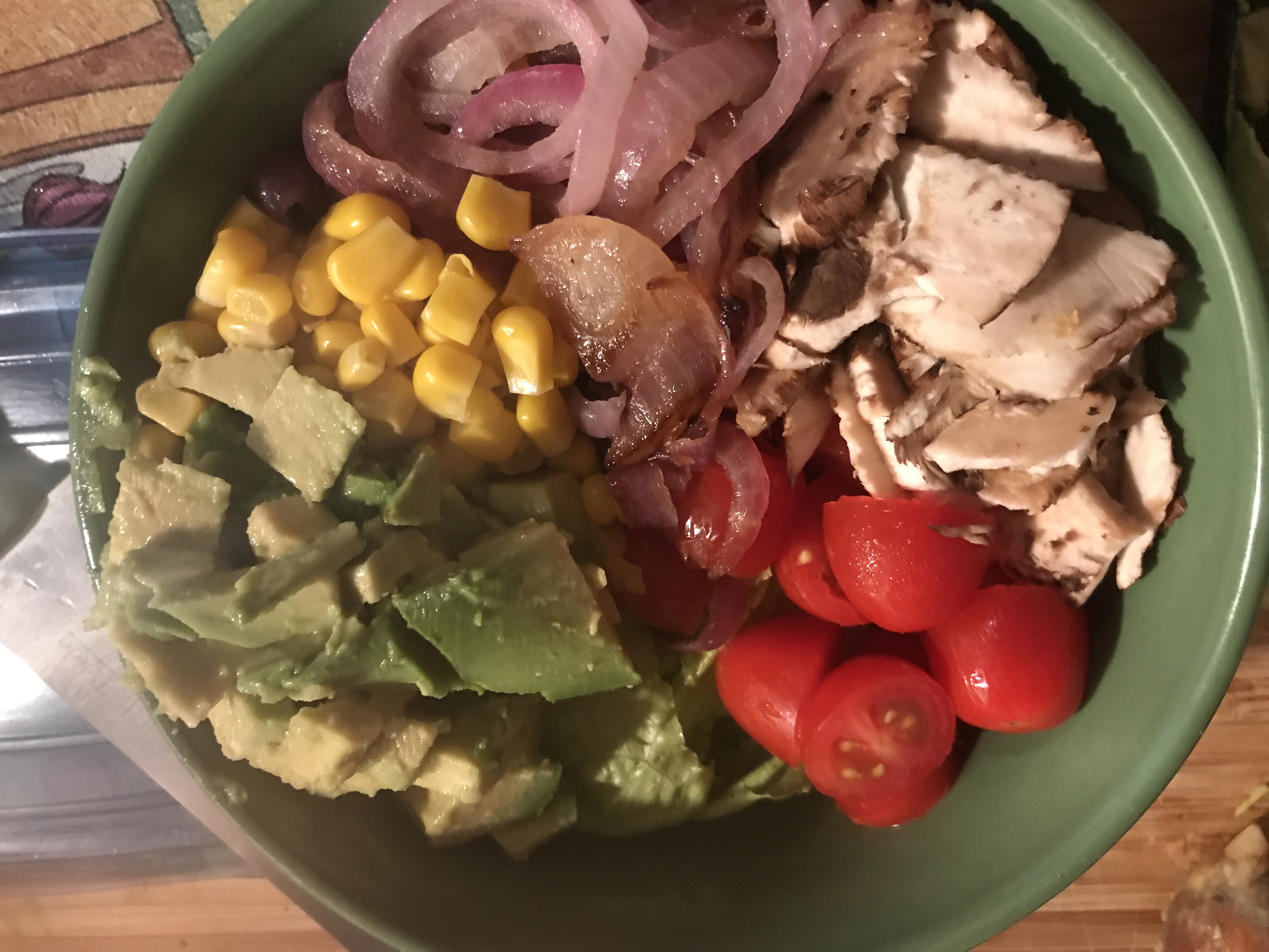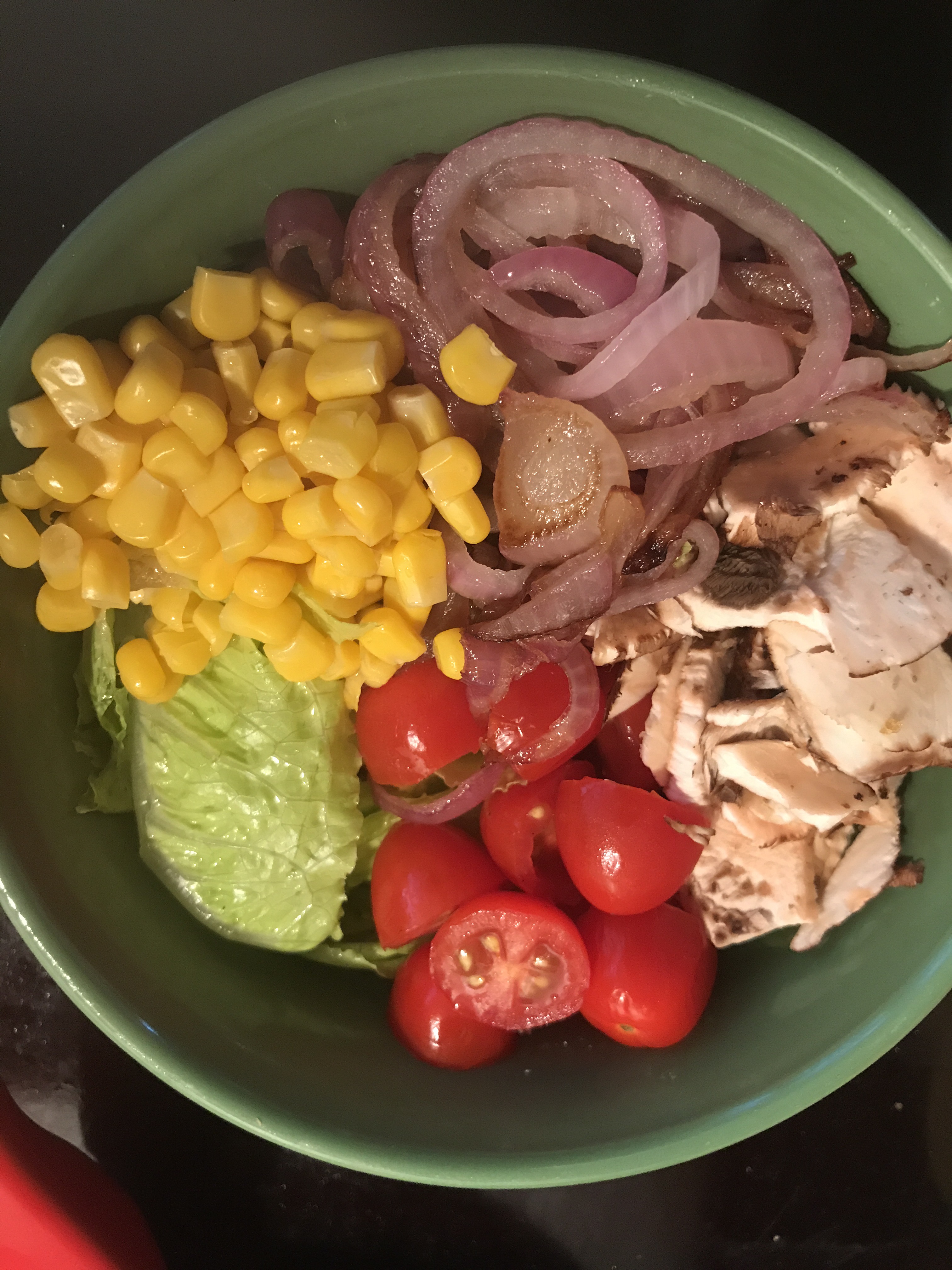 Add corn to the bowl next.