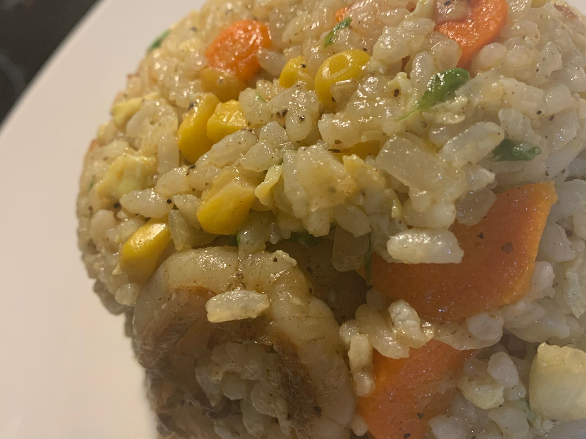 Turn heat to low-medium and add shrimp. Add corn, mix contents.