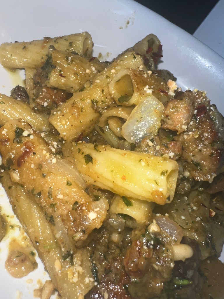 Start with making the Pesto sauce in a blender. Combine Fresh basil, salt, garlic, toasted pine nuts, Parmesan (DF) and blend while adding olive oil until a sauce is made.