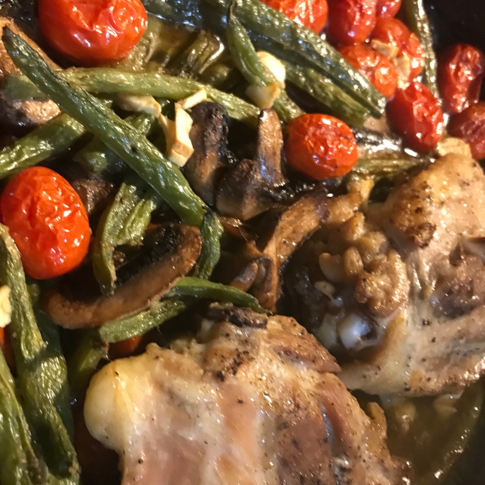 Chicken w. Green beans mushrooms, Garlic, & tomatoes